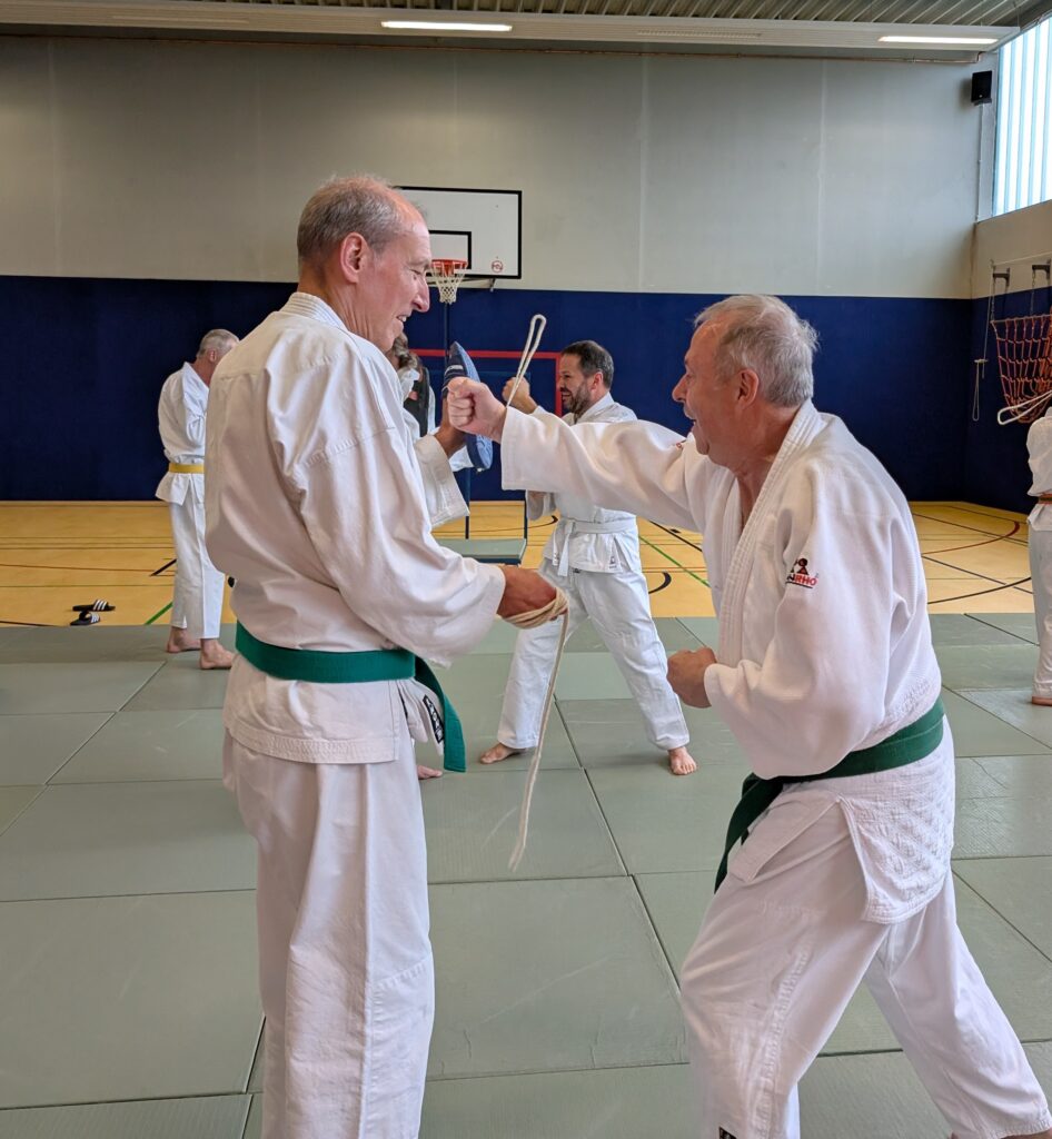 Kurzfristig übernahm Jürgen Lennertz 6. Dan, die Leitung und führte souverän und engagiert durch das Programm. Insgesamt 32 Ju-Jutsuka aus nah und fern nahmen teil. Vom Weißgurt bis zum Danträger war alles vertreten, was zu einer lebendigen, motivierten und vielseitigen Trainingsatmosphäre beitrug.