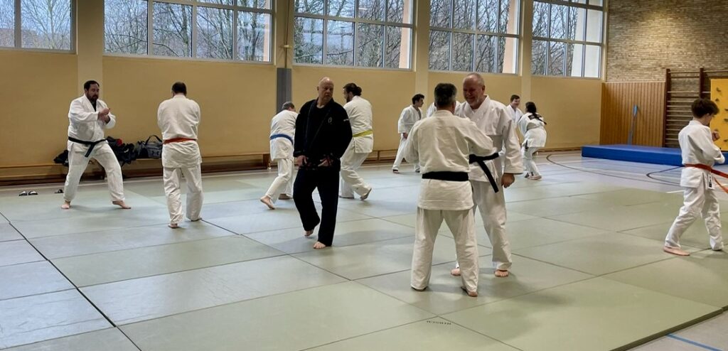 Der eigentliche Referent war kurzfristig krankheitsbedingt ausgefallen, sodass Bernd Bals (2. Dan Ju-Jutsu) vom TV Eichen spontan die Leitung des Lehrgangs übernahm.