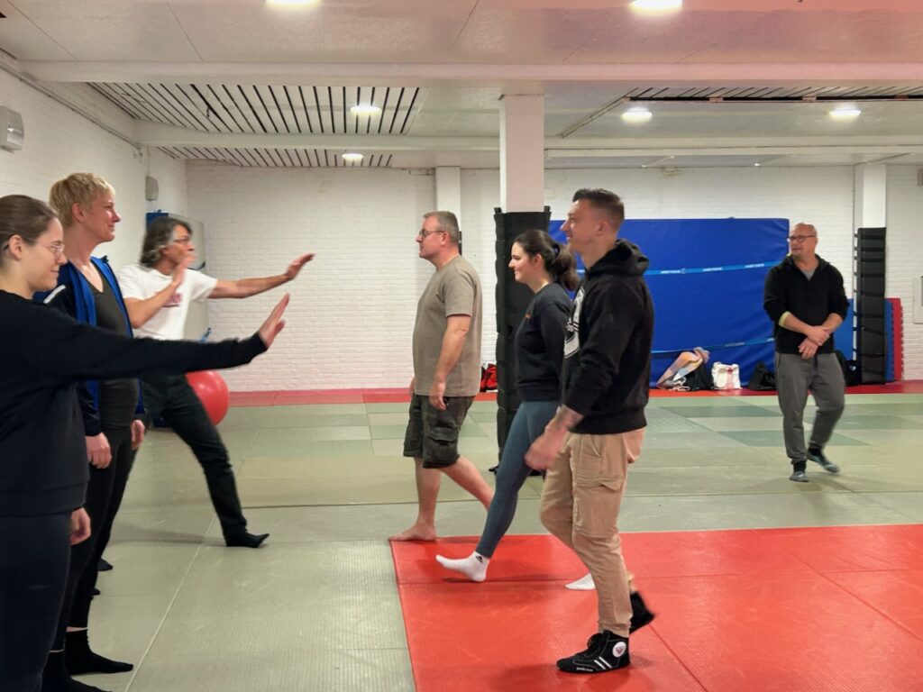 Es wurde viel praktisch gearbeitet: Stimm- und Schreiübungen, szenisch-kommunikative Selbstbehauptung, Körpersprache und das Anleiten effektiver Selbstverteidigungstechniken konnten die Kursleiterinnen und Kursleiter selbst erfahren und reflektieren. Dabei kam der Spaß auch nicht zu kurz: Durchsetzungs- und Rangelübungen gehören auch zu den Lerninhalten eines Kurses. Wichtig war, sich selbst im Vermitteln zu erproben. Die schriftlich festgehaltenen Lehrproben ergeben nun für alle ein gemeinsames Kursergebnis, das alle als Konzept für ihre ersten eigenen Kurse im Verein nutzen können. Die neuen Kursleitungen sind: Martin Giro vom PSV Neuss, Nico Städtler und Yves Kirchhoff von Eintracht Ergste, Isabelle Winkler, Lea Minge und Nicole Kuckhoff von Samurei Eschweiler, Steffen Schäfer von Budokan Bocholt, Frank Weinert von Bushido Ryu Gelsenkirchen, Tamara Wissen und Corina Laschet vom Brander TV Aachen, Christoph Pöggeler vom Ju-Jutsu-Club Olpe und Yvonne Poliakova vom TUS Hamm. Sie können nun in ihren Vereinen Frauen zu mehr Selbstbewusstsein verhelfen und die Erfahrung machen lassen: Ich bin nicht wehrlos!!