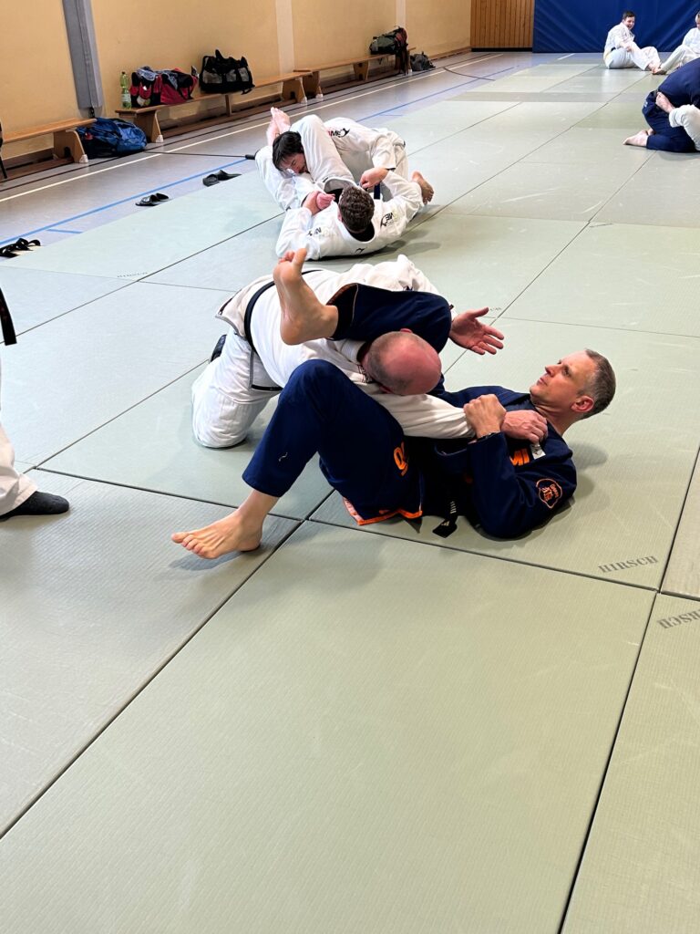 Der praktische Teil startete mit Vorübungen zur sicheren und effektiven Arbeit am Boden. Dabei lag der Fokus zunächst auf der Befreiung aus der seitlichen Haltetechnik. Aufbauend darauf wurden weitere Befreiungstechniken aus verschiedenen Haltetechniken vermittelt und intensiv geübt. Während des gesamten Lehrgangs stand Mike Knefel den Teilnehmenden mit wertvollen Tipps, Korrekturen und seiner großen Erfahrung zur Seite.